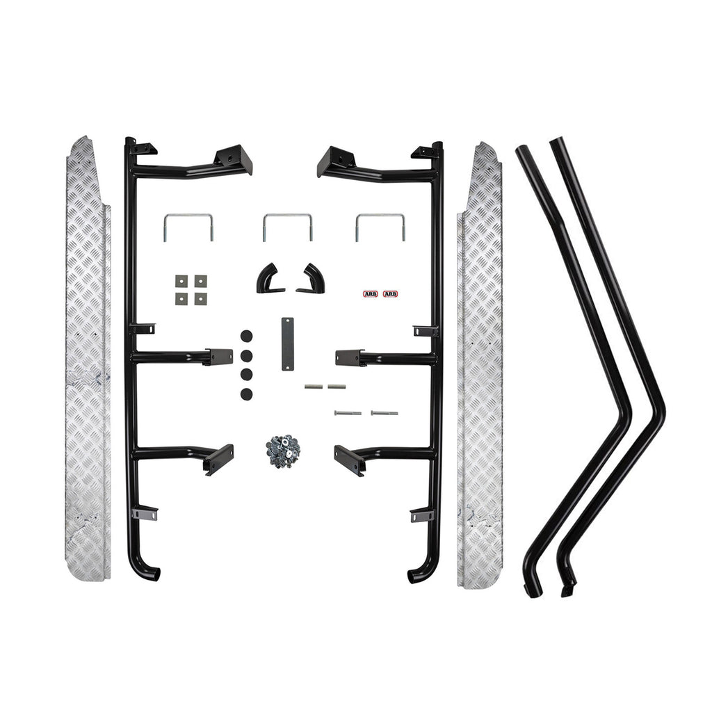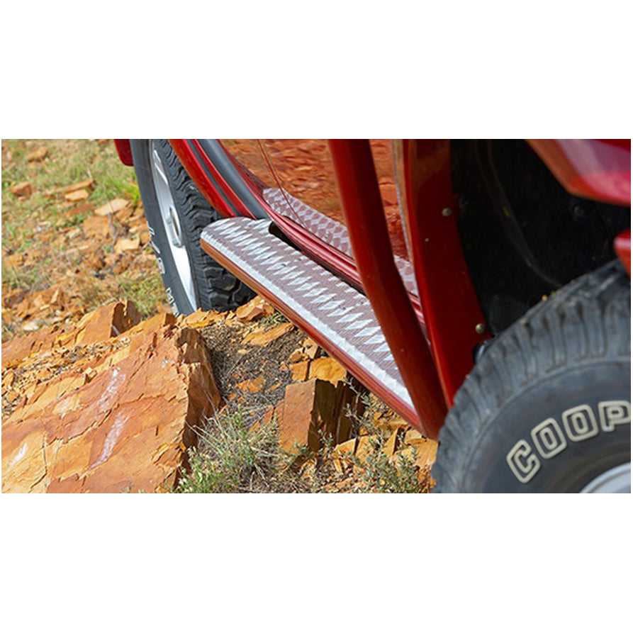 Each step is manufactured from mandrel bent tubular steel and incorporates a robust, side airbag compatible mounting system and non slip, checker plate tread. Likewise, the integrated side rails are manufactured from tough tubular steel, providing protection to vulnerable front quarter panels when negotiating challenging terrain.