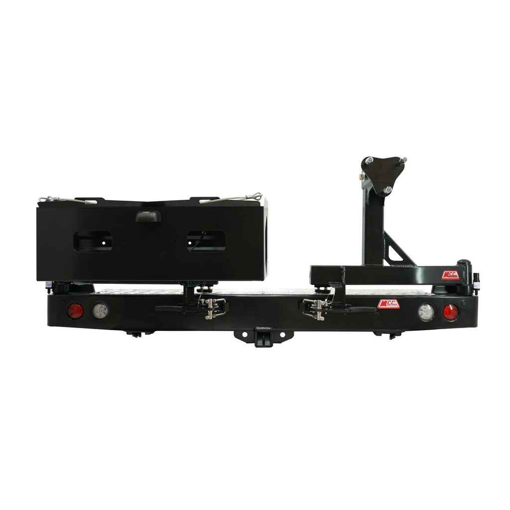 Our MCC Rear Protection wheel carriers offer superior protection and load carrying for your 4×4. Tow-bar compatible bars are constructed from tough steel and aluminium components, finished with a quality black powder coat and checker-plate not slip trim.