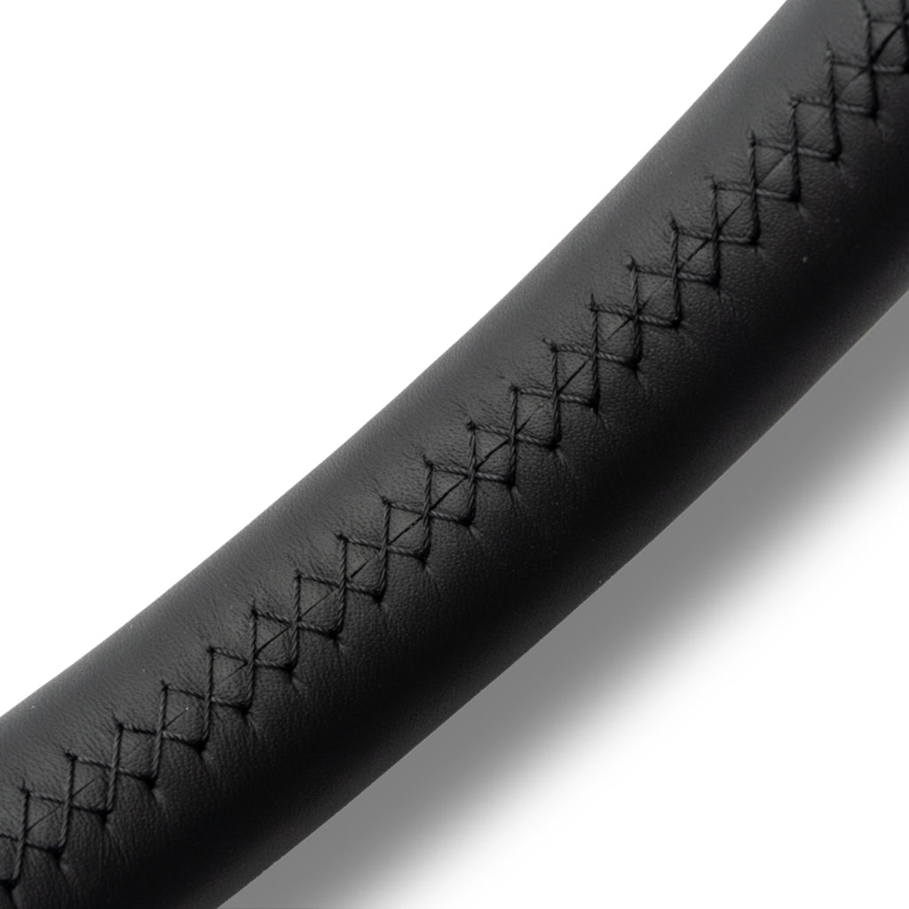 Prototipo Black Edition is the most iconic Momo steering wheel, now offered with a completely new look and finishes: matt black horn button with glossy black logo, exclusive “Prototipo Black Edition” glossy black marking on the lower spoke, Premium leather grip with hand made black cross stitching.