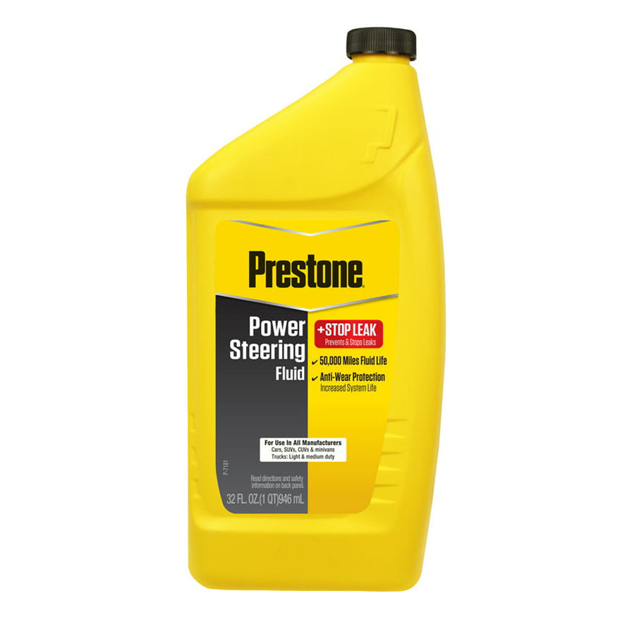 Prestone Power Steering Fluid + Stop Leak delivers increased system life, both preventing and stopping system leaks. Stop Leak additives renew, restore and condition seals in the power steering system. These seals harden and shrink over time which are the likely cause of leaks. The Stop Leak additives also prevent leaks by rejuvenating seals before they leak.