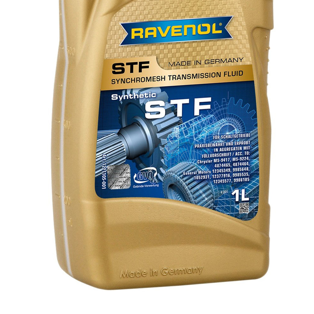 RAVENOL STF Synchromesh Transmission Fluid is a specially developed, modern transmission oil for manual transmissions and transfer cases by GM and Chrysler. Guarantees maximum wear protection under any operating conditions.