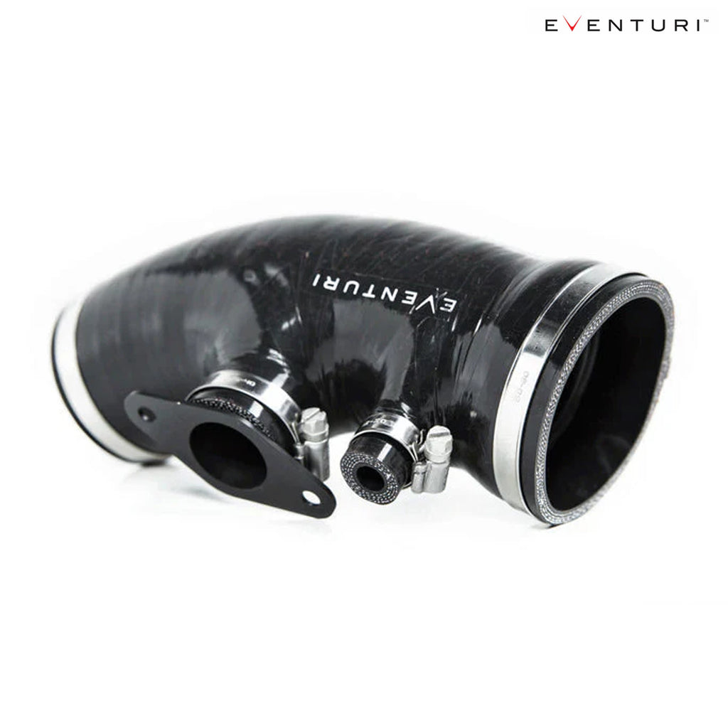 The Eventuri FK8 silicon hose is designed specifically for the Eventuri FK8 intake system. It replaces the stock hoses which connect to the alloy inlet tube for the turbo. The silicon hose allows for a smoother airflow part to the turbo from the intake. It also features an internal step which is matched to the stock alloy tube and thus eliminates the exposed edge of the tube which is apparent when using other aftermarket silicon hoses.